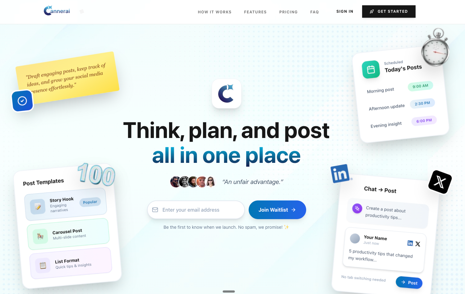 It's the only tool on this list that supports both LinkedIn and X out of the box, offers a free trial, and includes AI image generation. For creators and founders who want to stop stitching together multiple tools and start working from a single content workspace, CannerAI delivers.