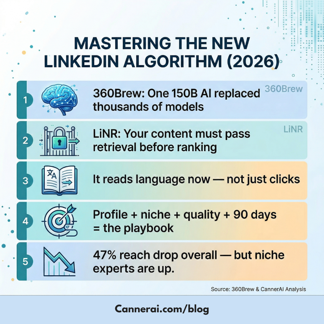 I went through LinkedIn's actual research papers, both the 360Brew foundation model paper and the LiNR GPU retrieval paper, so I could explain what the new LinkedIn algorithm actually does in plain English.